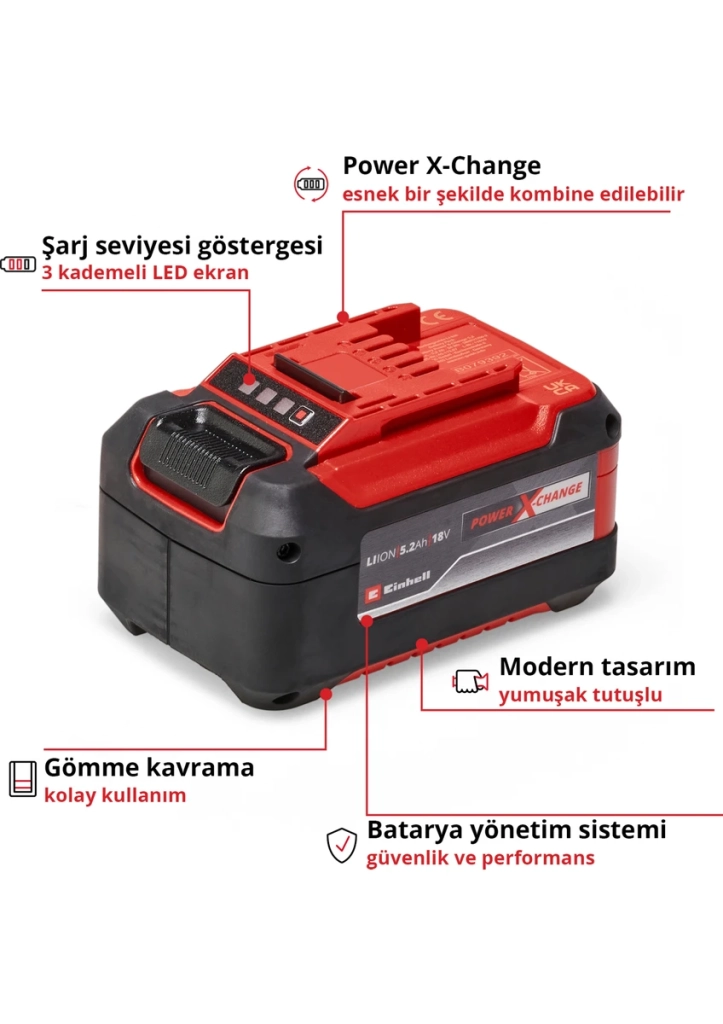 Einhell 5.2 Ah ABS Akü Power X-Change (Li-Ion Akü, 18 V, 5.2 Ah, Tüm Power X-Change cihazları ile uyumlu) - 4511437